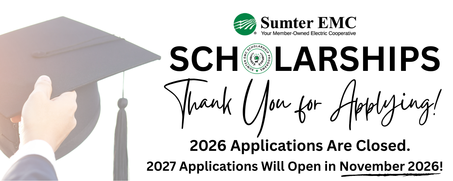 If you are a senior in high school or a student enrolled in a college or university, please complete the 2026 Application to apply for the Sumter EMC Scholarship and/or the Walter Harrison Scholarship. The form below is for Both of these applications.